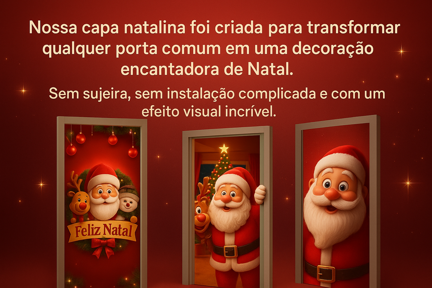 Com a Capa Natalina para Porta, uma porta simples se transforma em uma decoração encantadora em poucos segundos.